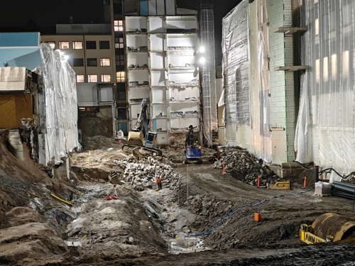 D-osalla käynnissä maanrakennustyöt, kallion irtiporaus sekä louhinta. A-osalla saneeraustyöt etenevät.