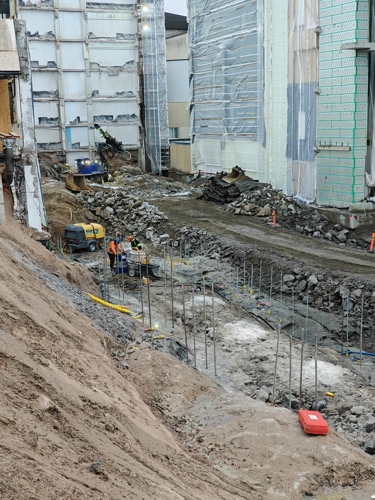 Työmaalla jatkuu seuraavat työvaiheet: Maanrakennustyöt, perustustyöt ja raudoitustyöt. Ensimmäinen alapohjavalu suoritettu, toinen käynnissä ja kolmas suoritetaan ensi viikolla.