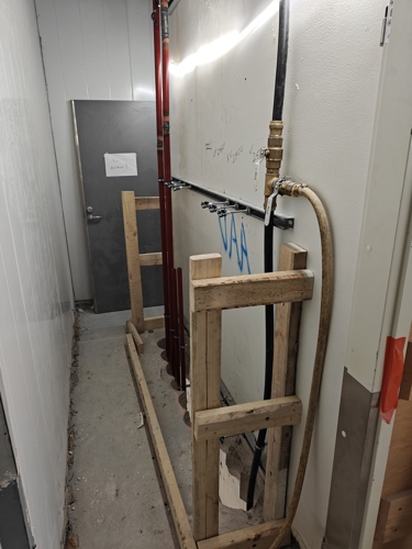 Työmaalla käynnissä julkisivun eristystyöt, IV-konehuoneen seinäelementtien asennus, väliseinämuuraus, pintalattioiden valutyöt, katon kallistusvalut, lattialämmitysputkien asennus ja tekniikan roilotukset tiiliväliseiniin.