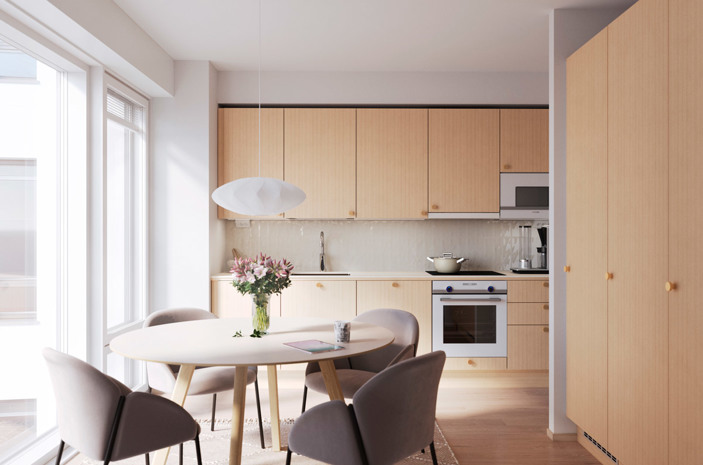 Teemme parhaamme viimeistelläksemme uuden kotisi toiveitasi vastaavaksi. Halutessasi sinulla onkin mahdollista teettää ostamaasi asuntoon myös muutostöitä yhtiön rakentamisaikataulun puitteissa. Käsittelemme kaikki muutostyötoiveet ja niiden mahdollisuudet tapauskohtaisesti. Lue lisää sisustusmateriaaliesitteestä.