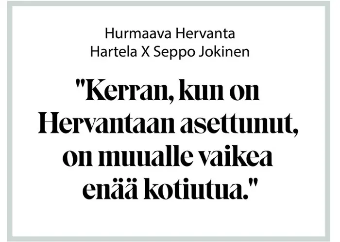 – Tarkoitan, Koskinen vastasi ja työnsi kätensä pöydän yli Raijan kämmenen päälle. – Rakastan sinua. Rakastan Hervantaa. Ja haluan teidät kummatkin takaisin.
