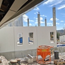 Työmaalla käynnissä rungon elementtiasennus ja itäpäädyn KVV-liittymät.