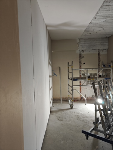 - A-osalla käynnissä väliseinätyöt ja talotekniikka-asennukset