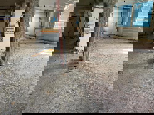 Työmaalla käynnissä julkisivun eristystyöt, väliseinämuuraus, pintalattioiden valutyöt, katon villoitus- sekä kattohuopa-asennus, viemäriputkiasennus, lattioiden hionta ja tekniikan uritukset tiiliväliseiniin.