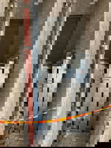 Työmaalla käynnissä julkisivun eristystyöt, väliseinämuuraus, pintalattioiden valutyöt, katon höyrysulkuasennus, viemäriputkiasennus ja tekniikan uritukset tiiliväliseiniin.