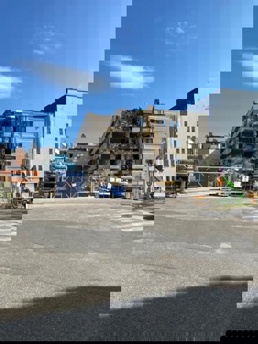 Työmaalla käynnissä julkisivun eristystyöt, IV-kattokonehuoneen rungon asennus, väliseinämuuraus sekä pintalattioiden valutyöt.